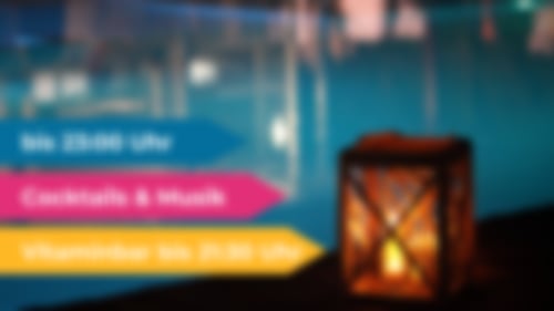 Erlebt ein entspanntes Nacht-Feeling in unserer Badelandschaft mit chilliger Musik und leckeren Cocktails bis 23:00 Uhr. Die Vitaminbar verwöhnt euch an diesem Abend auch bis 21:30 Uhr mit Snacks und weiteren Getränken – perfekt für einen gemütlichen Abend.